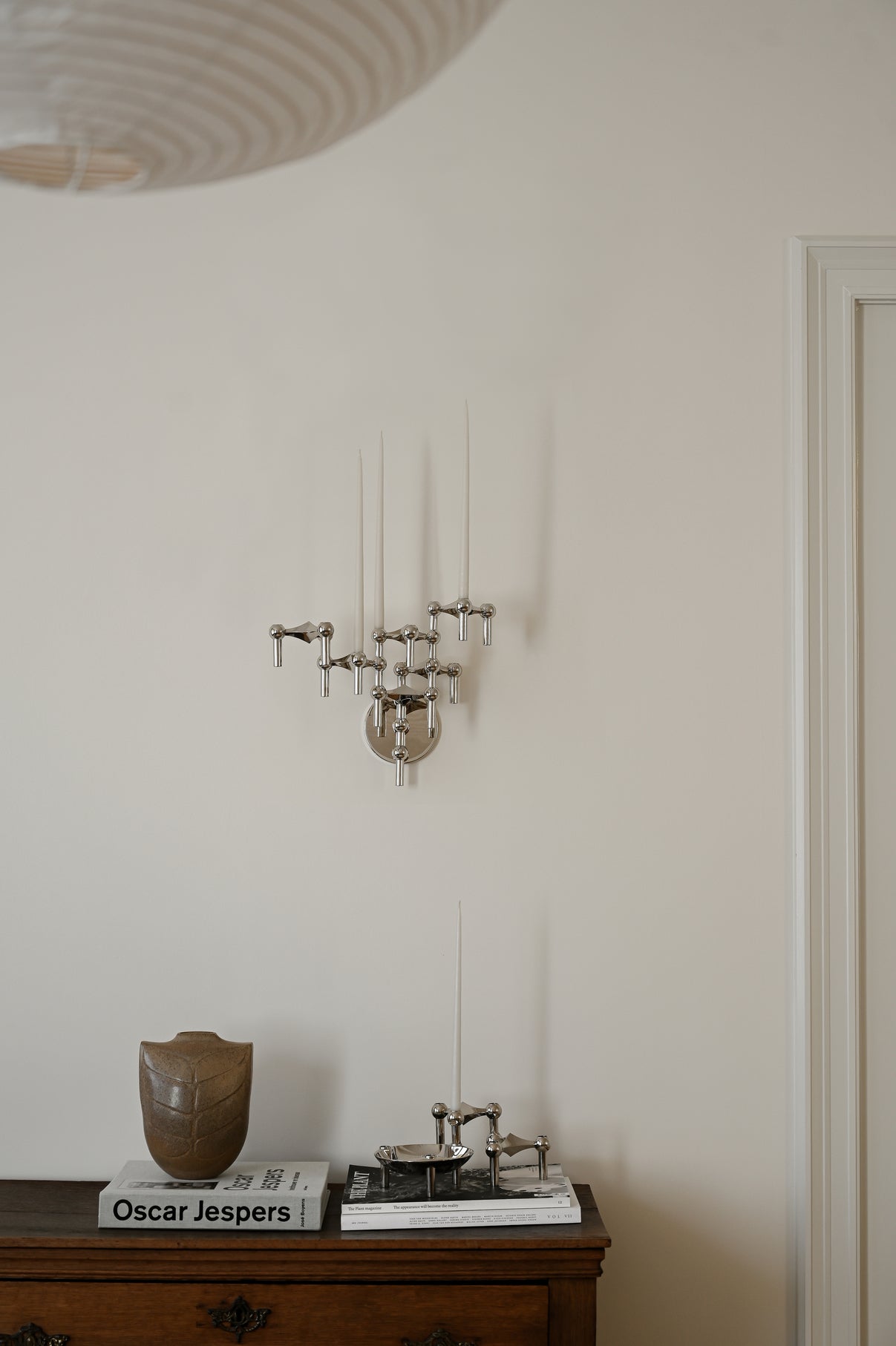 The wall hanger has been carefully developed to expand the visual possibilities of the candle holder. Inspired by the iconic STOFF Nagel design, the wall hanger makes it possible to create unique sculptures from vertical surfaces with infinite pieces of the candle holder, bowl, and vase.